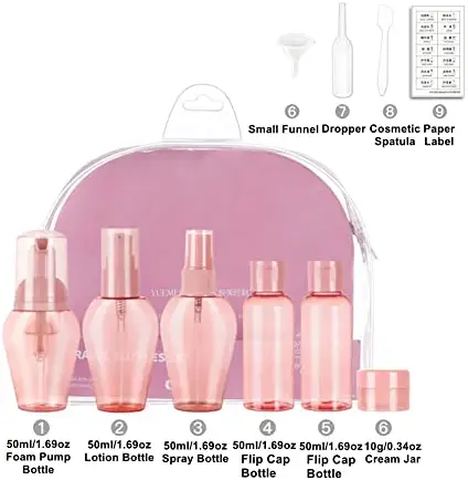Be the first to review “50ML Leak Proof Travel Bottles for Toiletries, Travel Size Cosmetics Accessories Toiletries for Toner, Lotion, Shampoo, Plastic Pump and Spray Bottle Containers for Business, Gym, Trip-11 Pcs (Pink)”