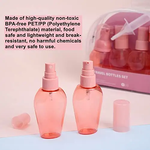 50ML Leak Proof Travel Bottles for Toiletries, Travel Size Cosmetics Accessories Toiletries for Toner, Lotion, Shampoo, Plastic Pump and Spray Bottle Containers for Business, Gym, Trip-11 Pcs (Pink)