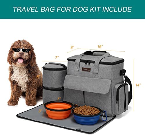 Modoker Dog Travel Bag, Weekend Pet Travel Set for Dog and Cat, Airline Approved Tote Organizer with Multi-Function Pockets (Grey)